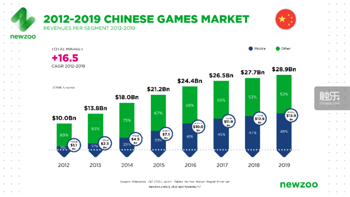 2012到2019年中国游戏市场预测(来源:newzoo)