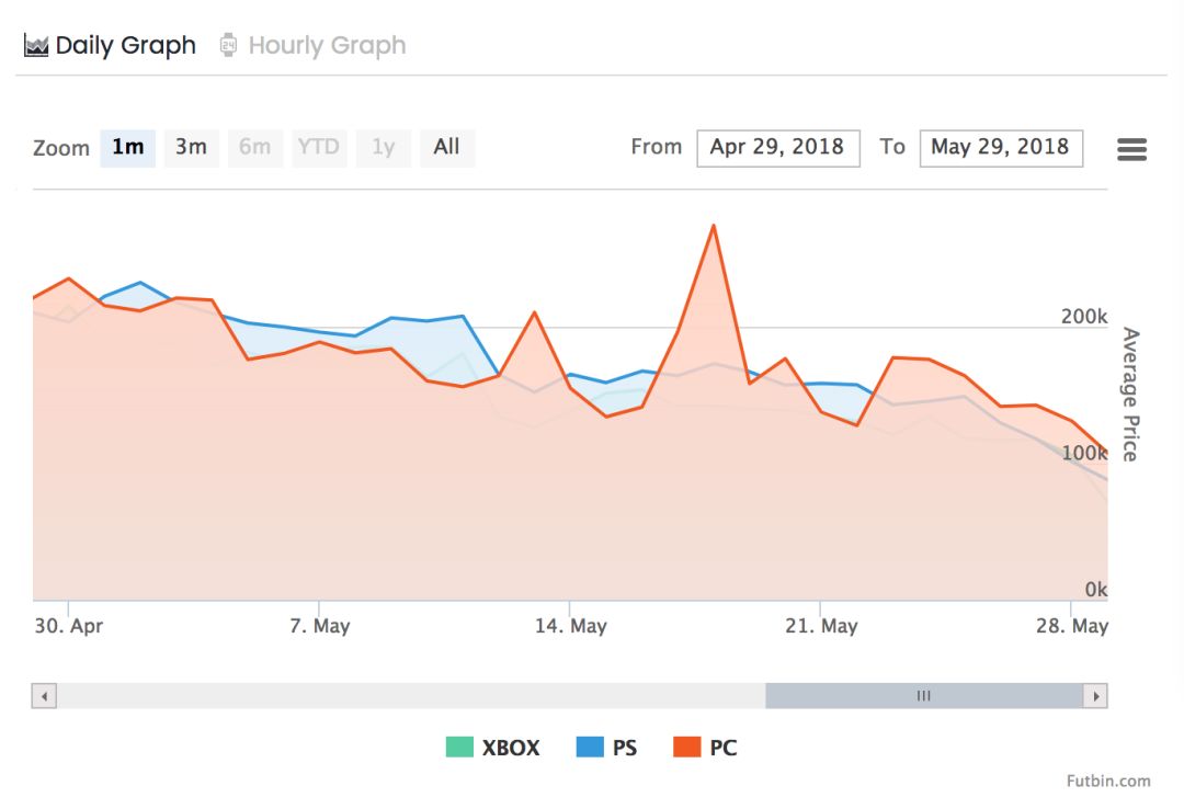 EA这个玩法当然是有负面影响的,首先就是世界杯FUT的上线导致原有FUT模式下的经济系统崩溃,在刚更新的一周内,大量玩家跑去世界杯FUT里尝鲜,原有FUT中的球员标价下跌了两三倍,许多刚出的蓝卡TOTS球员卖出了白菜价。如果有人在5月29日之前囤积金币等待抄底,那无疑是划算的,但绝大多数玩家本来就是穷人,他们只能继续穷下去——手里的任何东西只能低价甩卖,而且可能还卖不动。