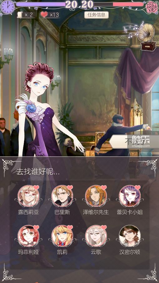 比美、跳舞收集到的爱心可以用于抽服装以及材料,算是提供了免费玩法;至于谈话增加好感度,只能硬记每个NPC喜好的话题。在社交场合中,一味顺着他人的话头是很累的,之所以没什么困难地坚持下来,还是因为舞会闲聊中有人类天性无法抵御的快乐活动——聊八卦,或听NPC私下说其他NPC的坏话……如果只是这样也过于肤浅,舞会闲聊中事实上包含了大量信息碎片,很容易推理出,除了帮贵族公子哥儿打听他的风评,或为贵族小姐拒绝求婚者这种日常故事外,另一条故事暗线正在进行,或者说早已开始。