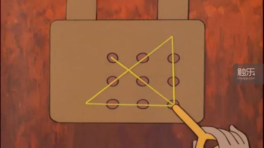 其余值得一提的还有利用触屏与玩家交互的跳舞小游戏,简单来说需要玩家在点阵中一笔画出一闪而过的符文,成功的话可以获得一颗额外的红心作为奖励。这个系统勾起了我的童年回忆——这不是《邋遢大王历险记》中小邋遢开智慧之锁的桥段嘛,不知道95后的年轻人知不知道这个梗......某些复杂符文确实有难度,尤其一口气闪现出两三个时,很容易忘记前面的符文该怎么画。不过身为DS玩家的我还是挺喜欢这种小游戏带来的挑战的。