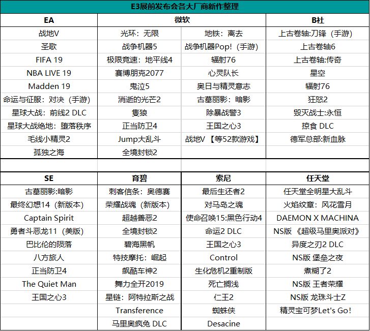 在EA、微软、B社、索尼、育碧、任天堂等大厂几天的新作轰炸下,本次发布会看点颇多。但各家粉丝玩家“有人欢喜有人愁”,原以为的肥宅快乐周有那么一点点糟心。