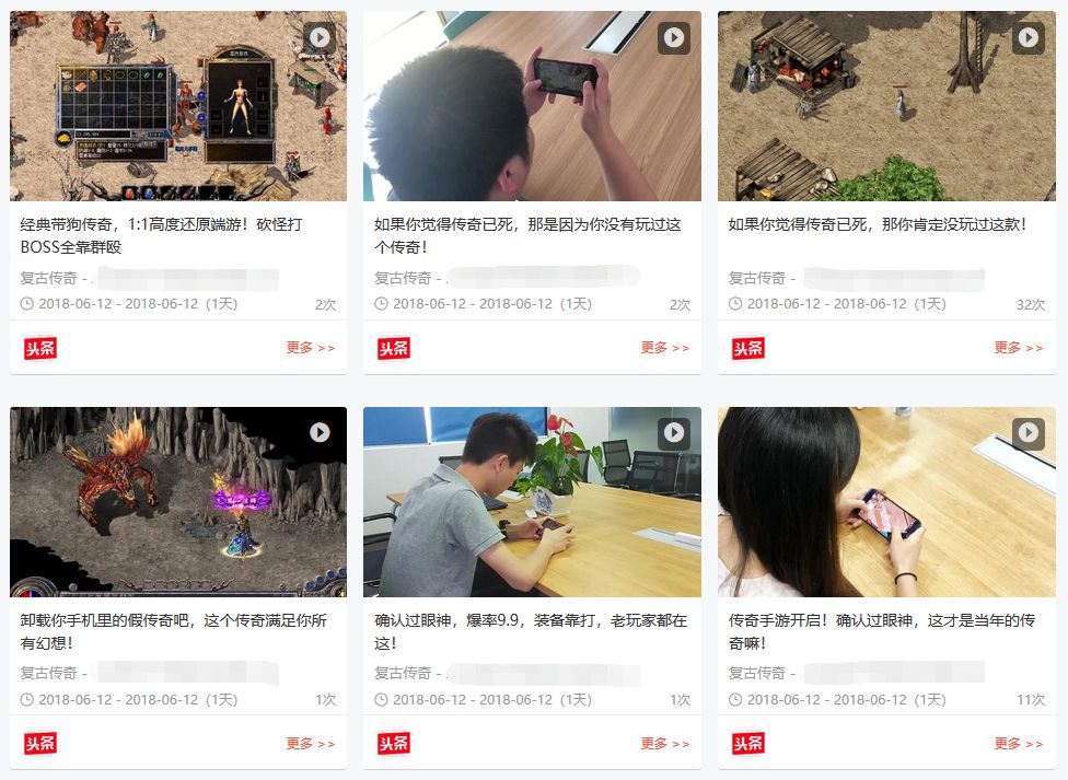 其实从投放渠道和广告形式来看,《复古传奇》的买量打法和一般的“传奇”产品并无不同之处。但是从买量素材的内容来看,《复古传奇》又和其他“传奇”有所不同。