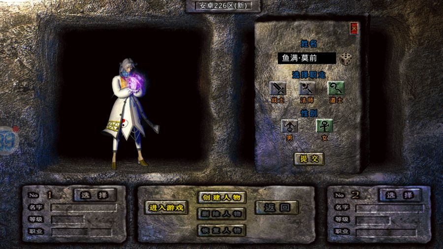 从一开始的角色选择界面上,笔者就感受到了《复古传奇》对于“复古”这个词的满满诚意。