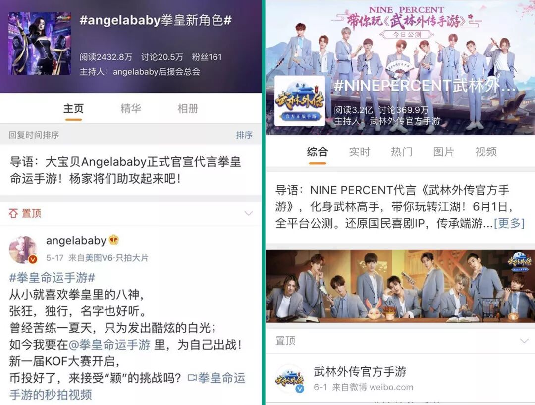 由Angelababy后援会发起的话题阅读接近2500万,武林外传官方发起的话题阅读超过3.2亿