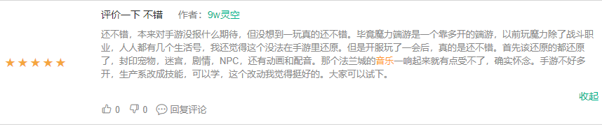 除了视觉上直观的刺激,要勾起老玩家的情怀千万别忘了听觉的存在。本作最受老玩家认同的要算经典音乐,甚至有玩家感慨“音乐出来的一瞬间鼻子就酸了"。游戏的可玩性或许存在争议,但在音乐的评价上,玩家“达成共识”。