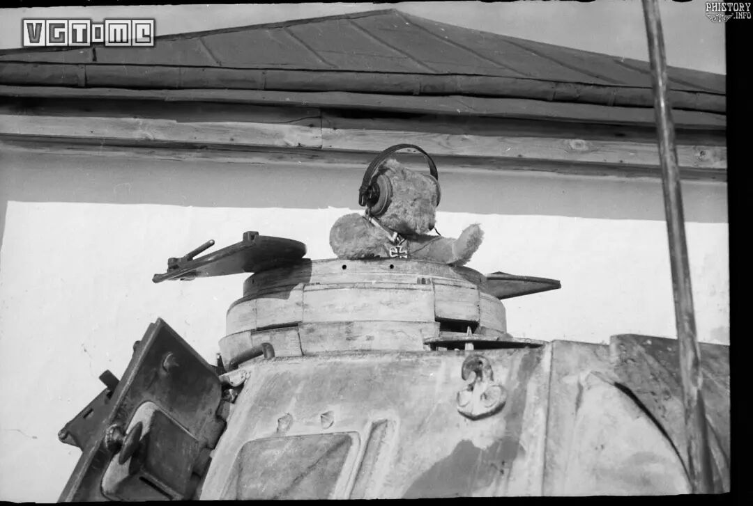 以开场“泰迪熊与丘吉尔坦克”的奇异搭配为例,它有着柴油朋克的“拼接”韵味。在二战期间,德国国防军第4装甲师第35装甲团第1营的部队标志就是一只小熊,将士们会把泰迪熊作为吉祥物粉刷在坦克上,又由于营长冯·柯塞尔少校战功卓越,吉祥物亦有“柯塞尔小熊”的有趣称谓。而在 Phistory 网站的一张老照片中, 士兵们为了留以纪念,将玩偶放置在座舱出入口,还为其配备了一枚铁十字勋章,营造了一种反差感。