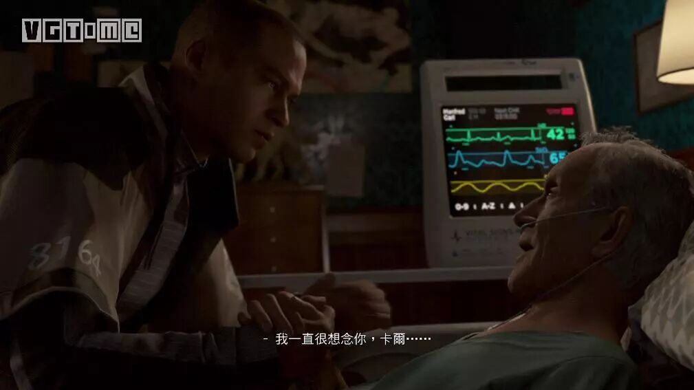 在整个游戏中,马库斯极少数的几次感情爆发的时刻都是跟卡尔有关,他在地狱中爬回来之后已经几乎毫无表情,哪怕是游行起义甚至跟诺丝解锁情人关系在一起时候,都没有出现过面对卡尔时候那种温和的模样了。后期唯一能看到马库斯真情流露的时刻就只有灵魂之夜中马库斯去找病重的卡尔时候的那句“你知道我有多想你”了。我甚至在思考,马库斯带领仿生人进行解放的时候,他们已经不将自己称为人类,而是另一种新的智慧物种。马库斯在离开了卡尔,成为革命者之后,反而在成为人的道路上越走更远了。