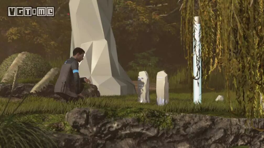 这个庭院在理解上是康纳型RK的一个内部意识,专门对总部进行VR通信连接时使用。虽然康纳型RK800并没有大规模量产,但模控生物依然存有不少康纳型的机体,在游戏中出现过的就有10台。康纳在游戏流程中死亡后,在禅意庭院里可以找到他的墓碑,什么时候死的,在哪里死的都在碑上一一注明,死多少台埋多少个。可惜流程最终并没有在禅意庭院自由活动的剧情,所以并不能看到9个墓碑一字排开那么壮观的画面,最后一次大概能看到5个左右。第一个墓碑的起始编号是51,至于前面50号到底是并不存在还是还没死并不清楚。