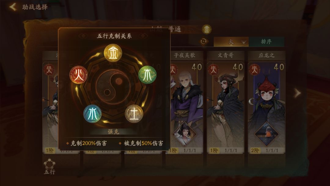 比如初期玩家会遇到的河伯,河伯属水,在助战列表中选择属土的妖灵会有更好的克制效果,起到伤害翻倍的效果。