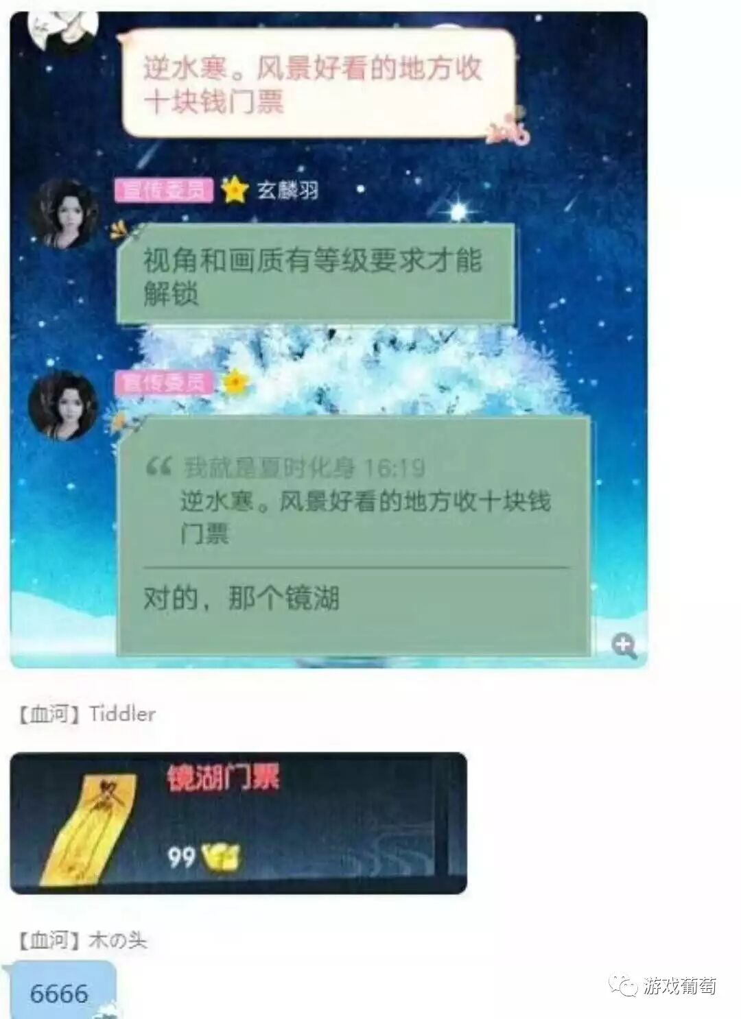 QQ群中,有测试资格的玩家在体验后表达了自己的不满,矛头直指氪金设计。比如风景好看的地方要收费,想去看镜湖需要花费99元宝的门票钱,折合近10元人民币:
