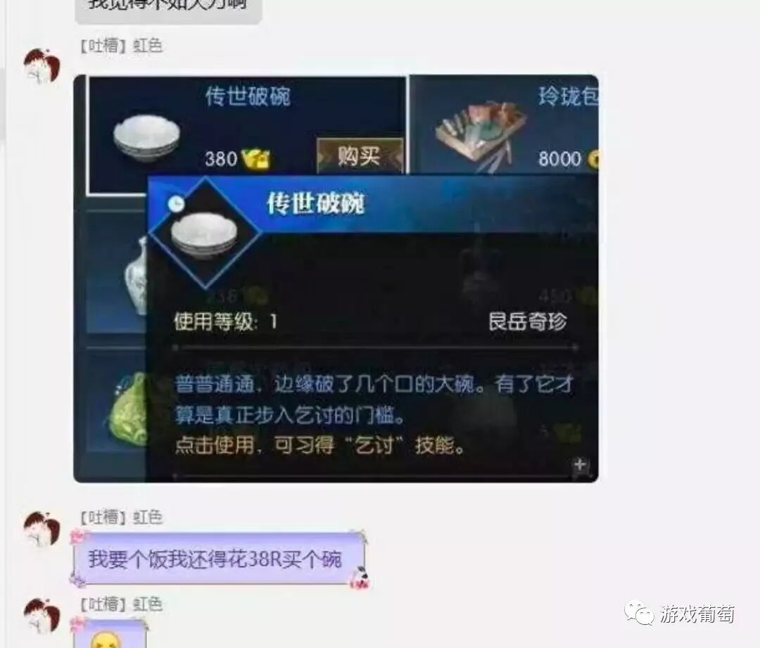即便是想当个乞丐什么都不做只混口饭吃,也得先交38元买个乞讨用的“传世破碗”: