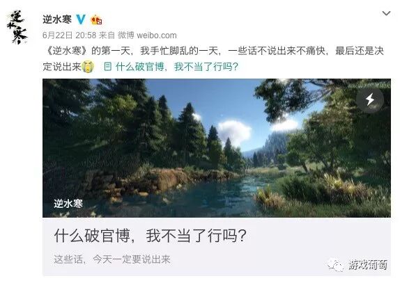 而相比于内容,倒想聊聊《逆水寒》官博本身这个特殊的角色。和多数游戏蓝V账号偏严肃、平实的表达方式不同,《逆水寒》的官博看起来似乎不那么官方。最为明显的是,其第一则辟谣文章的标题是《什么破官博,我不当了行吗?》,体现出了极强的个人情感色彩。在表述完官方对游戏氪金的看法后,官博表示“好了朋友们,我说完了,等一个开除通知。”