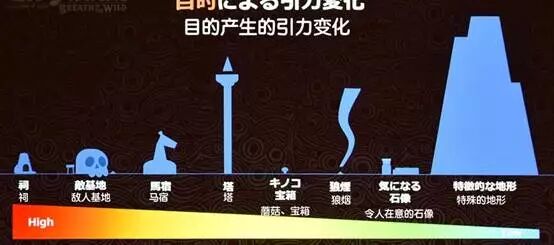 在《塞尔达传说:荒野之息》中,神庙提供了属性上的加成,敌人基地提供了装备,马厩提供了马匹的登陆以及道具的补充,塔提供了存档……