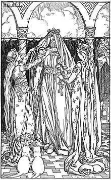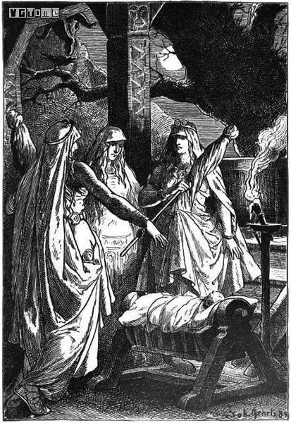 兀儿德的名字意味着“过去”,薇儿丹蒂掌管着“现在”,自然诗寇蒂就是“未来”的代言人,三女神虽然看透了所有的命运,但是她们没有能力将其改写。就算预知了诸神黄昏中众神的结局,三女神也只能在言语上警告他人。
