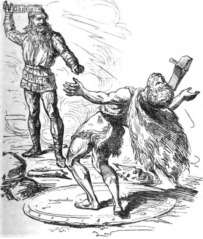 神坛中的赫朗格尼尔,被描述为虽然头颅由石头构成,但是心智和小孩子没啥区别。奥丁和索尔这两个恶棍在酒宴上设计把赫朗格尼尔杀了,凸显了二人的邪恶。