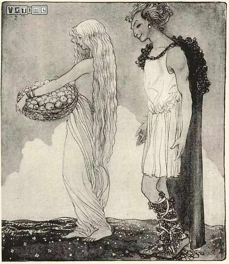 在北欧神话中,伊登是青春与春天的化身。作为一位女神她也有着自己的职责,那就是在阿斯嘉德掌管让阿萨神族永驻青春不老容颜的苹果。阿萨神族的众神每过一段时间就要去那里吃个苹果,就像定期进行美容理疗一样,这样才能保证他们永远保持年轻,要不然他们就会像普通人一样衰老死去。