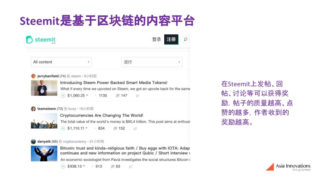 为什么呢?因为它有应用在承载它。什么是Steem呢?它是一个基于区块链的应用平台,所谓的付费知识,其实说白了就是大家写文章发在上面,可以点赞、回复,可以给他回馈奖励。