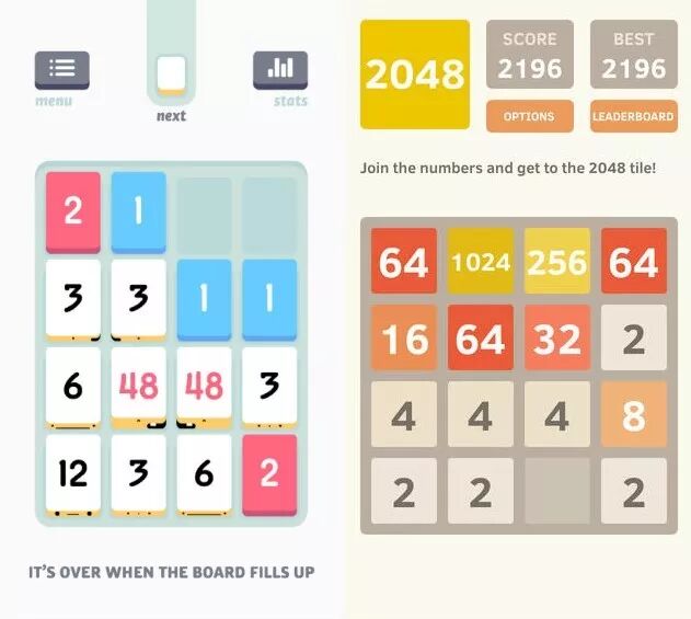 同时,这一领域之中,玩法“借鉴”也屡见不鲜。国内玩家最为熟悉的例子,应该就是曾风靡全国的《2048》了——它的玩法实际上辗转脱胎自另一款同类手游《Threes!》,国内在此基础上还有更多的换皮版本。