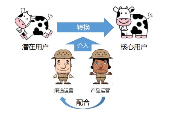 所谓养熟的过程就是如何让原本草原上的牛羊们(潜在用户),慢慢习惯你牧场的节奏,变成你自己牧场的牛羊(核心用户)。在这个过程中就需要好的管理人员1号(渠道运营)、管理人员2号(产品运营)、。
