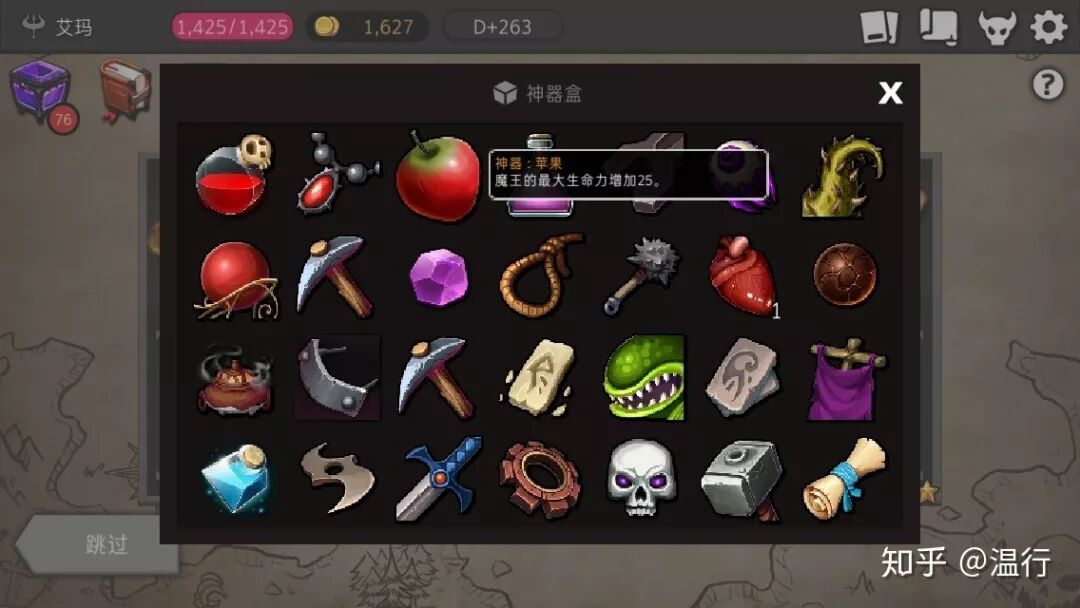 至于宝箱则是玩家会获得随机的三个神器三选一的机会(类似下图,后期神器满的时候基本上奖励都固定为生命药水了)。