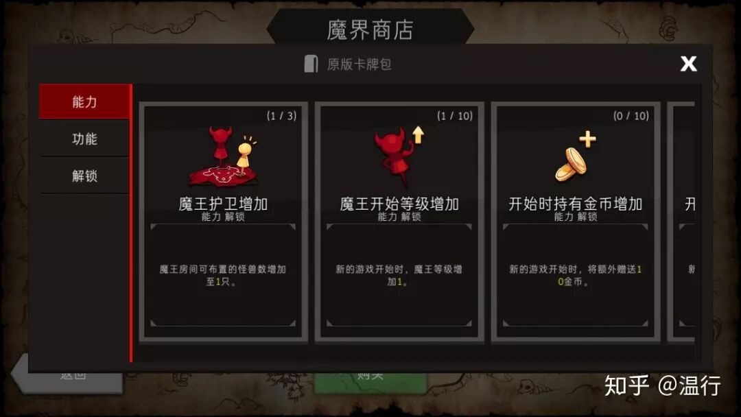 游戏的商店。把一些原本整体的功能为了营收而生硬的拆解成2部分是否合适,比如解锁了魔王,并不代表你可以解锁他的专属神器,双倍经验也是分一个个魔王购买的,自动权能捆绑着魔王一起卖,而且在价格上面与游戏本身的价格差太多。作为一个付费游戏,玩家在体验时更多时候可能是认为游戏中很多功能已经解锁,即使有DLC,也应该价格相差不多,而不是如此胡乱要价。