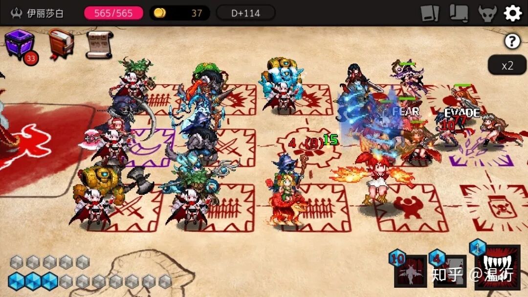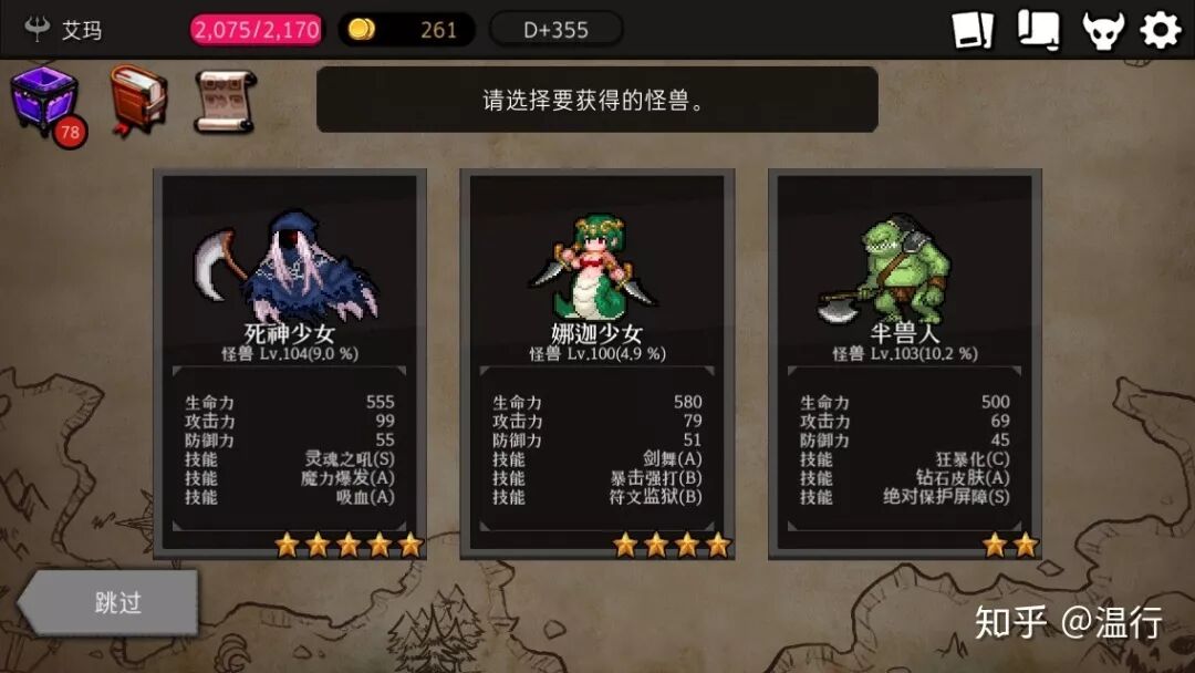 所以,这也就带来游戏中的第一个深度策略,选择怪兽卡牌时,除了看怪兽的星级以外也需要关注怪兽的技能。关于继承技能,在之前的一些游戏中就已经使用,比如《火焰纹章:英雄》,但是对于一款Rougelike的手游来说,这样的设计则会将游戏带入的更核心向(通常来说游戏越硬核,受众用户越少)。