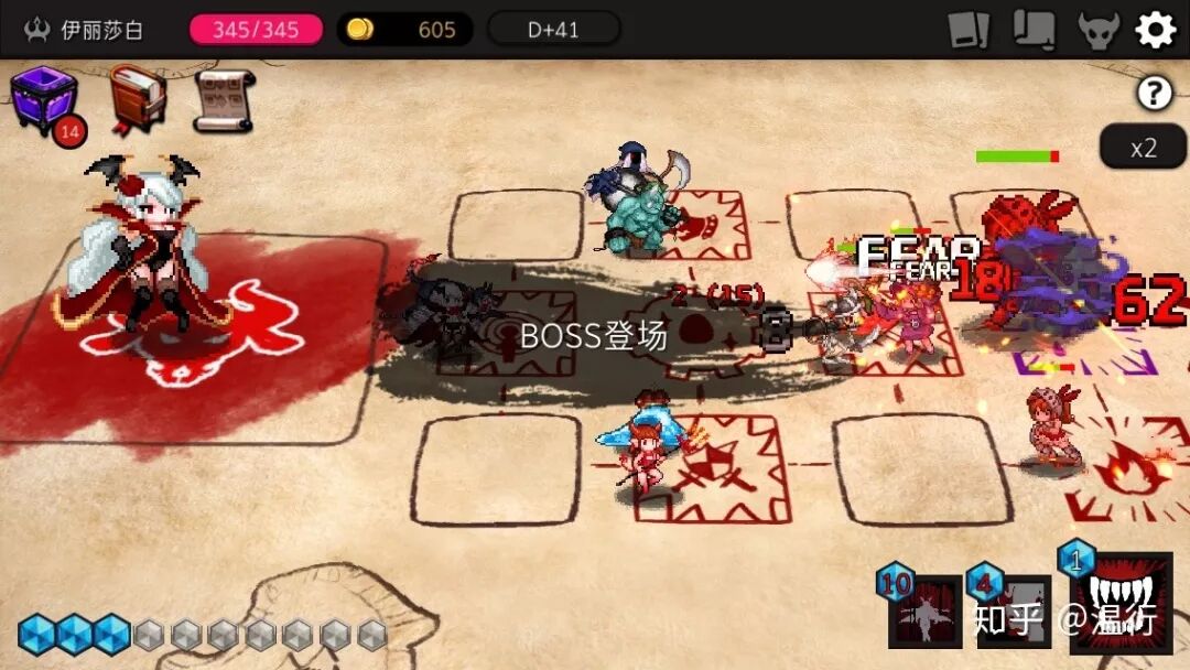 其次,这款游戏从游戏的玩法和方式上来说,则是一款塔防类游戏,想象一下《植物大战僵尸》,源源不断的僵尸(勇者)从右边不断向自己的家(魔王)攻过来,而需要玩家利用好自己的花盆(房间)安防好植物(怪兽)来抵御一波波攻击,连上面图中"Boss登场"的文字显示,都和《植物大战僵尸 》类似。