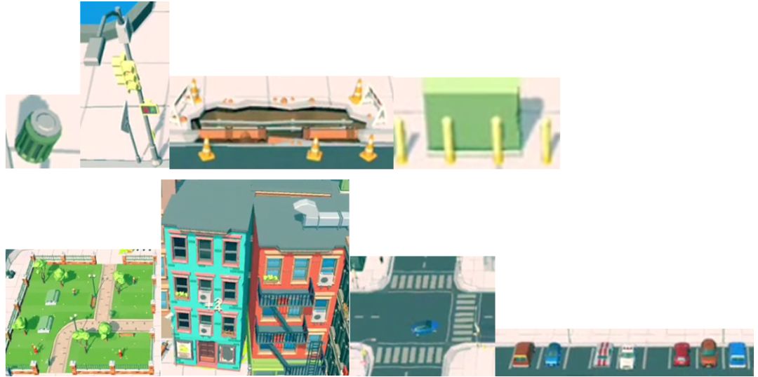 可吞噬的物品有散步的居民、奔跑的居民、树、墙、垃圾桶、防护栏、道路灯、井盖、各种工程障碍物、汽车、房屋等等。