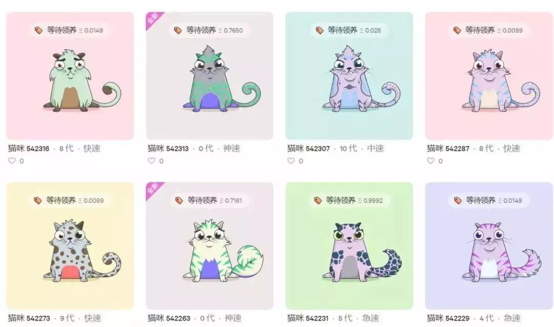 基于区块链技术的加密猫(CryptoKitties)于2017年11月28日登陆以太坊区块链,至当年12月11日已有2万多只虚拟加密猫被交易