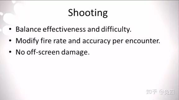 接下来我们要讨论的是艾丽的射击逻辑。《最后生还者》里对艾丽的定位是允许她在游戏中后期持枪射击敌人,然后并不希望她成为一台杀戮机器,也就是说你不可能看到她连续把20个敌人干趴在地上。