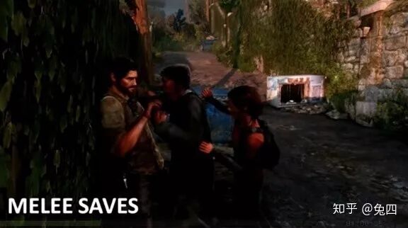 仅当艾丽跟乔尔之间距离不远、两人之间没有过多障碍、乔尔自身没有被抓住、且确保乔尔能够看到艾丽的时候,我们才会触发艾丽的求救。这时玩家控制乔尔去营救艾丽就相对自然一些,而且合情合理,玩家在营救完之后也能尽快回到战斗中去。