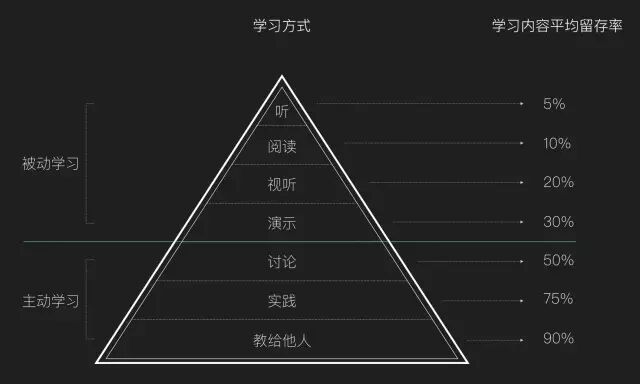 根据美国缅因州训练实验室 (National Training Laboratories)研究的学习金字塔模型可以看到,不同的引导提示方法带给玩家的效果非常不同。