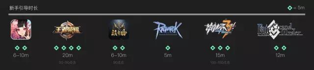 对市面上几款游戏的新手引导进行统计,发现大部分新手引导的体验时长都在10分钟左右,一些较重的游戏更是超过了15分钟,且需要大量的重复点击。