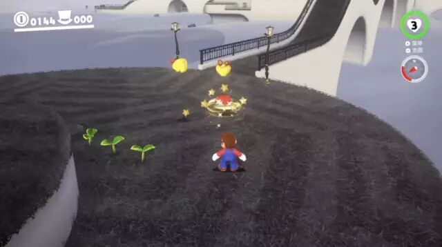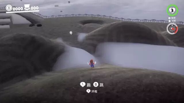 《超级马里奥:奥德赛》的新手引导关卡(1-1帽子国),基本上完全符合上述所有新手引导的设计方式。在这个引导关卡中,设计师将地图分为3个部分。每个部分都是相对独立的空间,负责一部分专项的引导内容。