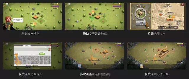 《Clash of Clans》在引导过程中,根据其实际的功能作用和操作方式,制作了多样的引导样式。