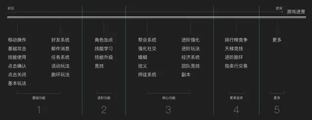 将游戏根据其功能的核心程度,划分几个区间,根据玩家的实际游戏进度,逐步开放相应的玩法。