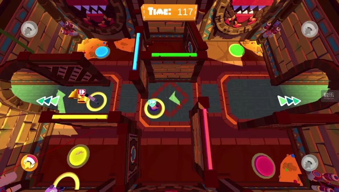 这款一点也不拟真的VR游戏,却收获了不少好评——开发团队不刻意追求“虚拟现实”,或者说在机能限制下不得不思变,转而探索只有在VR下才能实现的玩法,把《The Playroom VR》变成了一个可多人游玩的“聚会游戏”合集,基于“一个玩家戴VR头显,其他玩家看电视”的形式,设计了6种或合作或对抗的游戏模式。