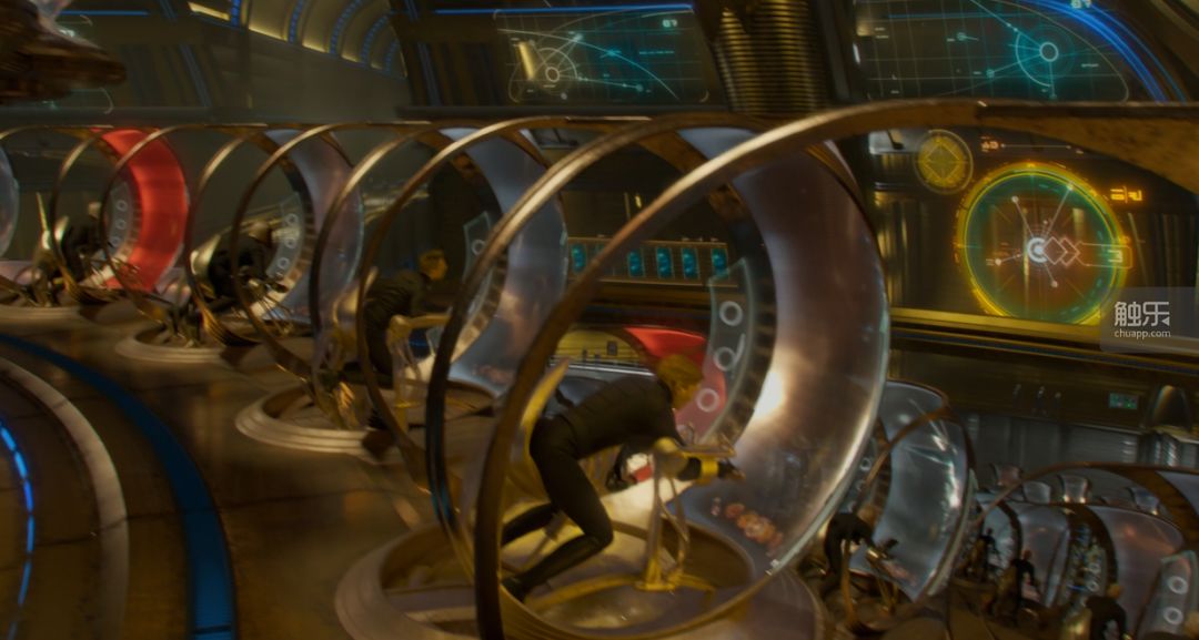 钟爱游戏的导演甚至会在电影里塞点私货。在《银河护卫队2》里,导演就毫不吝啬地表达着自己对游戏的喜爱,塞入了符合电影80年代风格的游戏彩蛋。例如将橄榄球游戏掌机改造成探测仪,空战场景致敬街机游戏《大蜜蜂》(Galaga),等等,以及每个人都能发现的“吃豆人场景”。最皮的是操控飞船的场所看着像个街机厅,导演更是捕捉出了街机厅的精神:围观群众在游戏的紧要关头给你打气、支招,又在你失败后哄笑散去。
