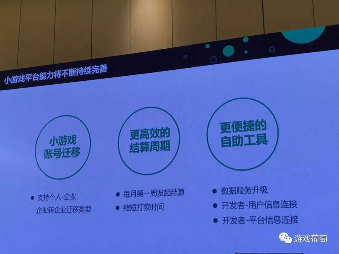 第一个是大家非常关注的小游戏帐号迁移的事,小游戏将会在近期支持账号迁移,支持个人主题转企业主体,以及企业主体转企业主体。