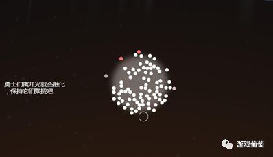 游戏一开始有许多的光球开始缓缓下落,玩家用鼠标控制圆圈光标来推动光球们,防止他们偏离光源范围后消失。