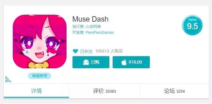 而在《Muse Dash》发售后,它在TapTap上拿到了超过了两万的好评,评价分数达到了9.5分。同样值得一提的是,《Muse Dash》面向全球发行,游戏曾拿下日本AppStore付费榜的首位。