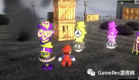 B区域则是引导玩家如何操纵帽子,并通过帽子进行攻击;在最后的C区域则是阶段性的高潮,玩家会遇到游戏中第一个BOSS,并在BOSS的交锋中逐渐掌握帽子和人物的基本操作。线性地图可以让玩家的成长被设计者控制,逐渐学习新技能,而在帽子王国的任意一个角落都可以看到C区域BOSS的飞船,则是强化玩家的目标意识,让玩家时刻清楚自己至目标的进度