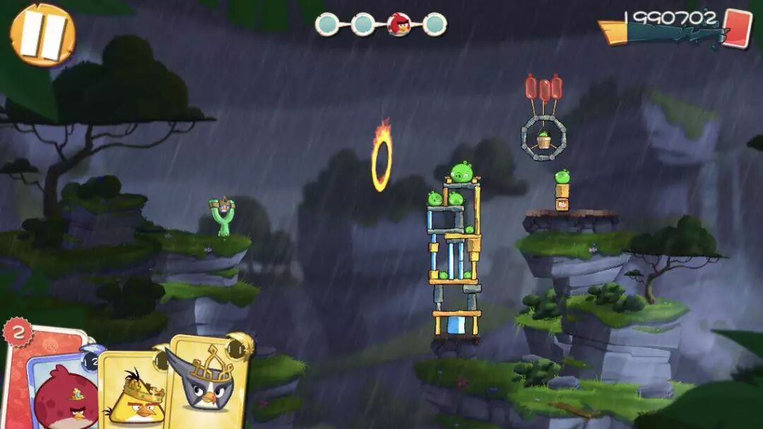 5、随机。随机保证同样的关卡重复闯关可以带来不同的乐趣,愤怒的小鸟2中出现的3张卡牌是从卡池中随机出现的。对于同样的关卡由于给出的小鸟不一样,需要玩家利用给出的小鸟特性重新考虑飞行顺序和方向。