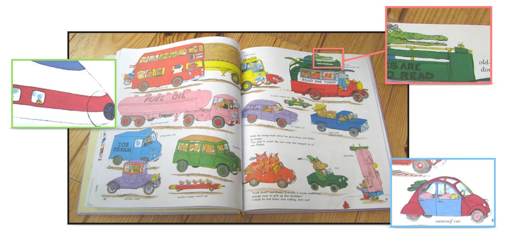 给孩子讲故事的过程应当是循序渐进的,有许多细节让孩子自己挖掘,而不要一下告诉孩子结局。Gutierrez 举的例子是在现实中大受孩子欢迎的理查德·斯凯瑞的金色童书系列,每一集教会孩子一个主题,里面有丰富的画面和故事细节等待孩子们探索。