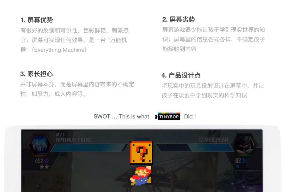 “然而,屏幕的内容家长们难以控制,可能会有成人或暴力的内容,而且过度游戏也容易让小孩上瘾。” “那我们有没有可能把现实中玩玩具的体验,通过屏幕来实现,让小孩玩耍的同时学到现实生活中知识呢?”