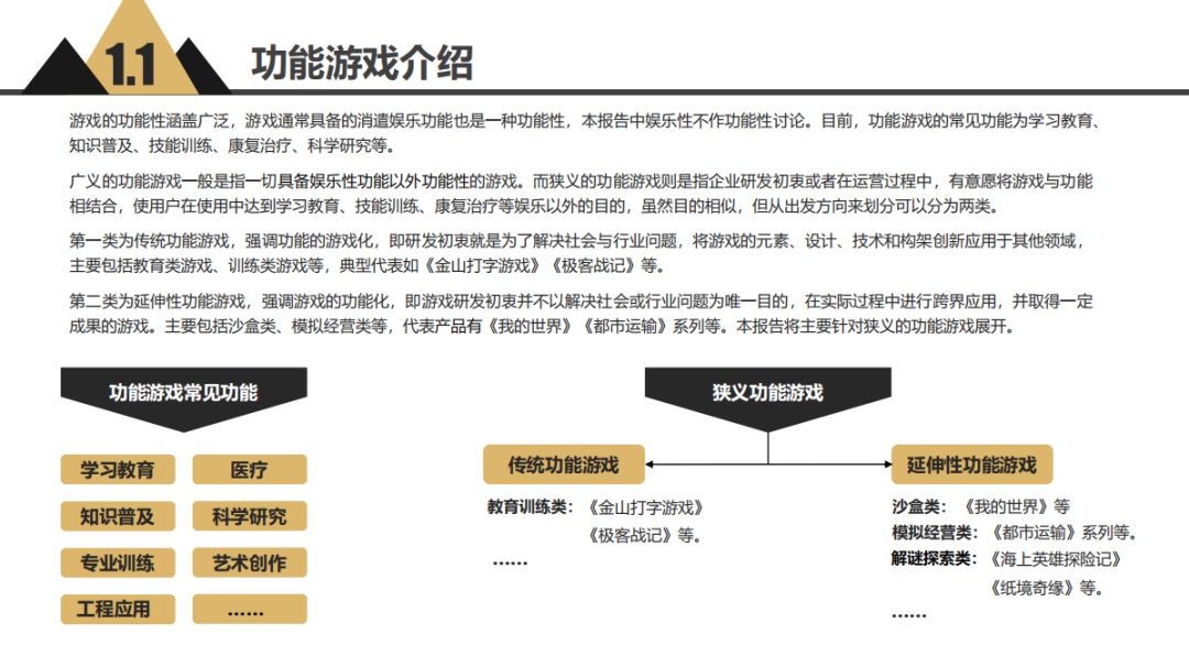 当然,目前报告中所总结的功能性应用方向未必面面俱到,而且单独一款产品也不可能做到面面俱到,然而这也正是功能游戏需要被鼓励发展的原因,只有市场上涌现出更多像《我的世界》一样的产品,才有可能最大化地体现游戏的功能性价值。