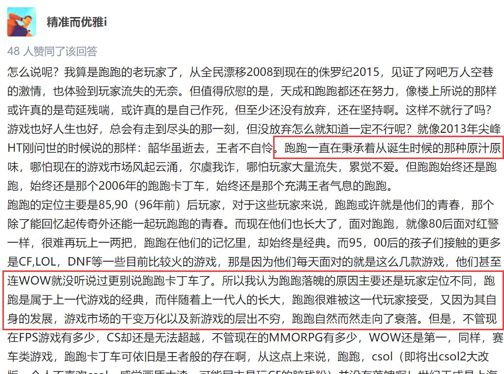 知乎上“跑跑卡丁车落魄的原因是什么”下的一个回答,认为跑跑还是原汁原味的,这种原味具有双刃剑的效果