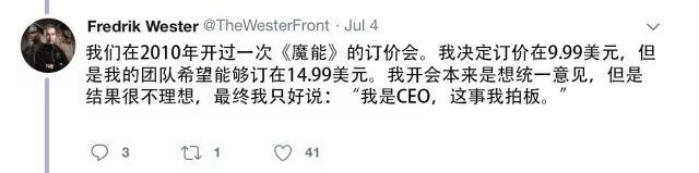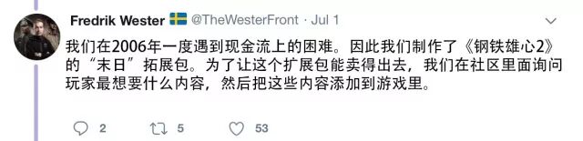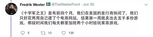 从那以后,直到2016年P社上市,再到今年韦斯特卸任,媒体和玩家们接触到更多的都是P社的PR和研发团队,而CEO韦斯特就很少发声了。不过他在社交媒体依然还算活跃,并且偶尔也会抛出一些热血玩家一样的言论:
