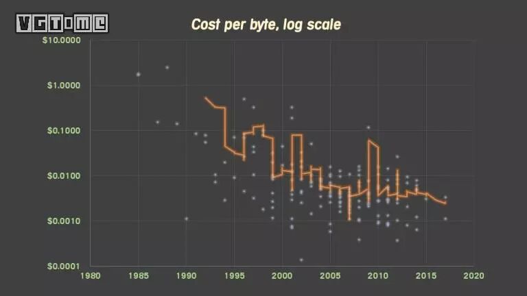 从2010年开始,单字节耗费的成本几乎没有再降低了
