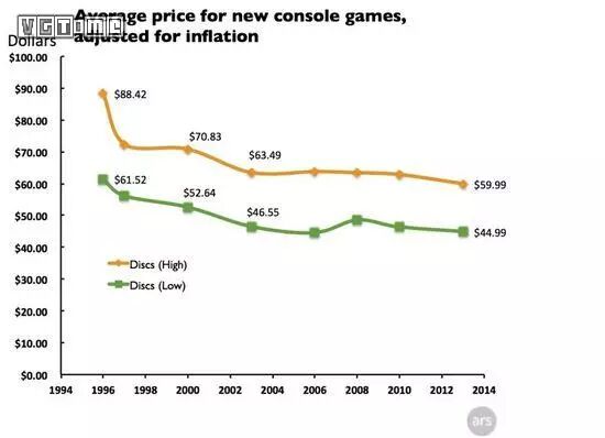 光盘游戏的降价曲线,数据来源于ArsTechnica